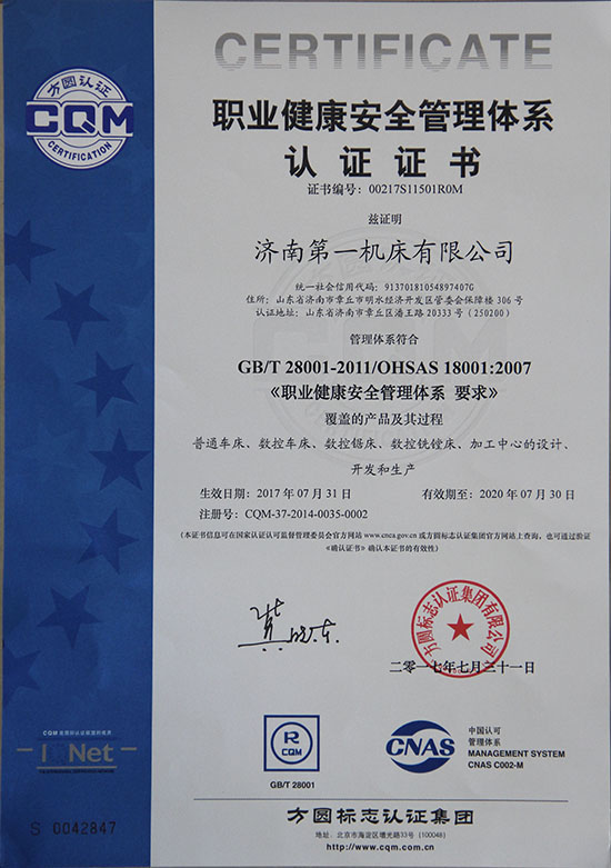 職業(yè)健康安全管理體系認(rèn)證證書(shū)